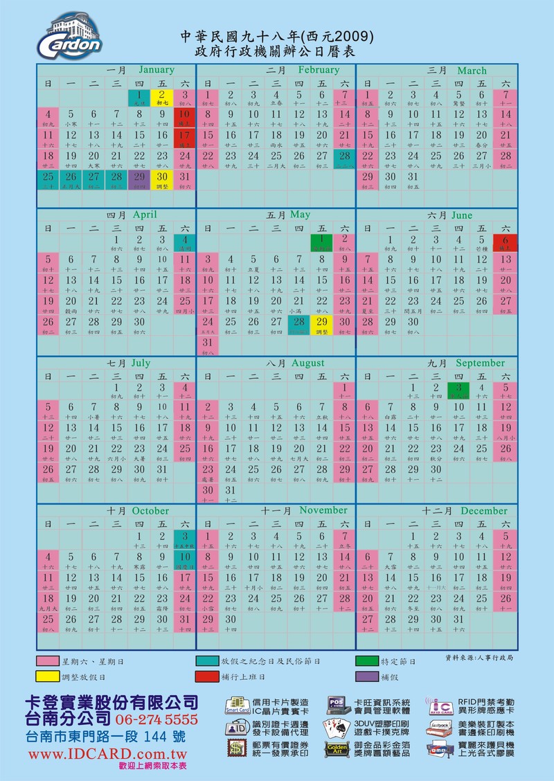 精美九十八年度行事曆(依照行政院最新公告) + 基本英文1000單字-1(A~L)
