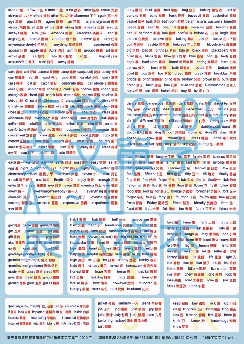 2009 最新公家行政日曆表(人事行政局) 英文基本單字 1000字 -1 ( A~L)